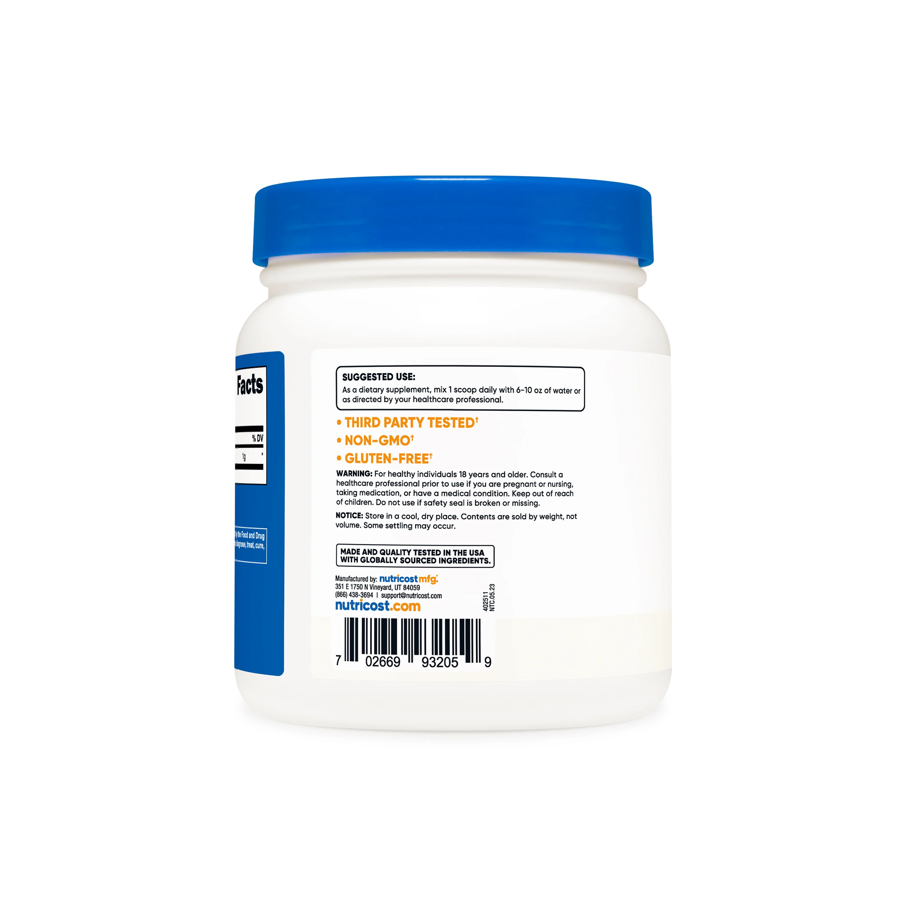 Non-GMO, Gluten Free, 3rd Party Tested